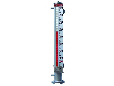 該產(chǎn)品由本體、翻板箱(由紅、白雙色磁性小翻板組成)、浮子、法蘭蓋以及液位變送器等組成。工作原理為:本體外的翻板箱及變送器受本體內(nèi)浮子(具有定向磁性源,按不同介質(zhì)和壓力針對研制)的作用促使翻板翻動并顯示紅白顏色,并隨浮子的移動指示不同的液面高度,同時液位變送器將液位信號傳送至控制中心進行液位指示和控制,也可通過計算機進行集中監(jiān)控。